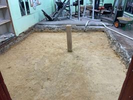 В п. Хорлово активные инструкторы спортивного центра «Новое поколение» объединили усилия для ремонта пола в зале пауэрлифтинга. Процесс начался со снятия старого покрытия, после чего последовательно укладывается слой песка. Для достижения наилучшего результата каждый слой тщательно проливается водой и утрамбовывается.
