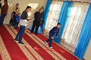 В ходе эстафеты семьи соревновались в разнообразных веселых конкурсах и эстафетах. Они играли в дартс, участвовали в новогоднем баскетболе и наполняли “мешок счастья”. Все это сопровождалось праздничной атмосферой и позитивным настроением.