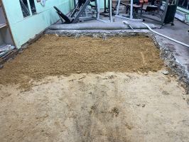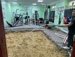 В п. Хорлово активные инструкторы спортивного центра «Новое поколение» объединили усилия для ремонта пола в зале пауэрлифтинга. Процесс начался со снятия старого покрытия, после чего последовательно укладывается слой песка. Для достижения наилучшего результата каждый слой тщательно проливается водой и утрамбовывается.