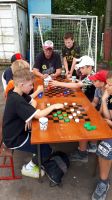 В футбольных соревнованиях участвовали 6 команд. Юные футболисты боролись за право быть первыми и за сладкий приз.